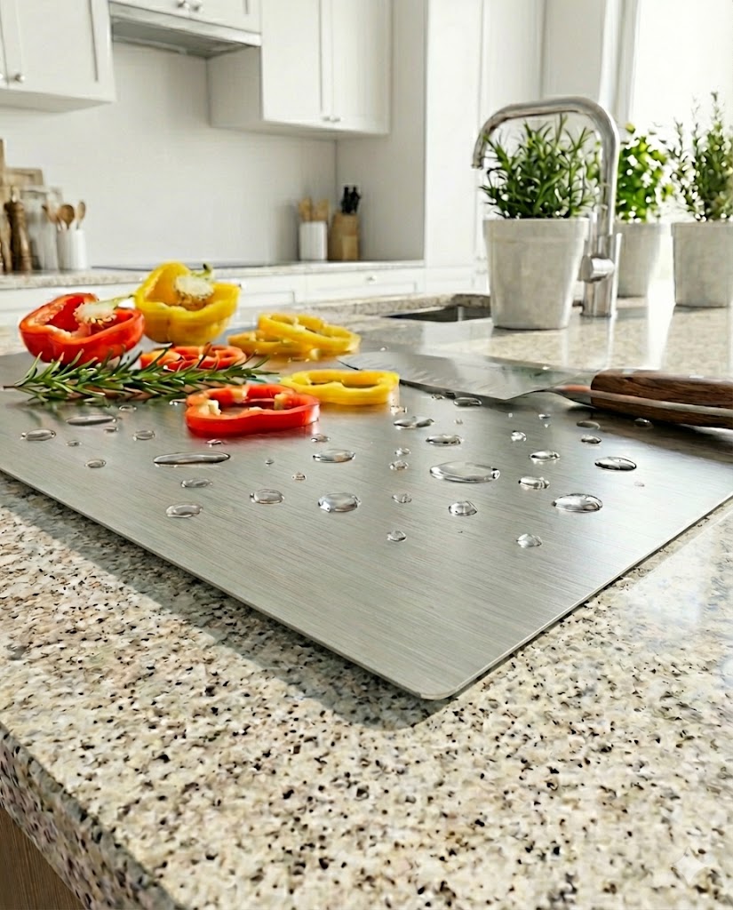 Çelik kesme panoları, standart tahtalara göre daha ağır bir yapıya sahiptir; bu da kendiliğinden tezgâh üzerinde daha stabil durmasını sağlar.